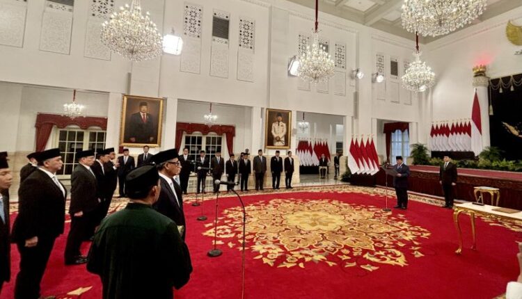 Presiden Prabowo Subianto melantik 31 tokoh dan diplomat sebagai duta besar Republik Indonesia untuk negara-negara sahabat dan perwakilan RI untuk organisasi-organisasi internasional dalam upacara pelantikan di Istana Negara, Jakarta, pada Senin (24/3/2025).