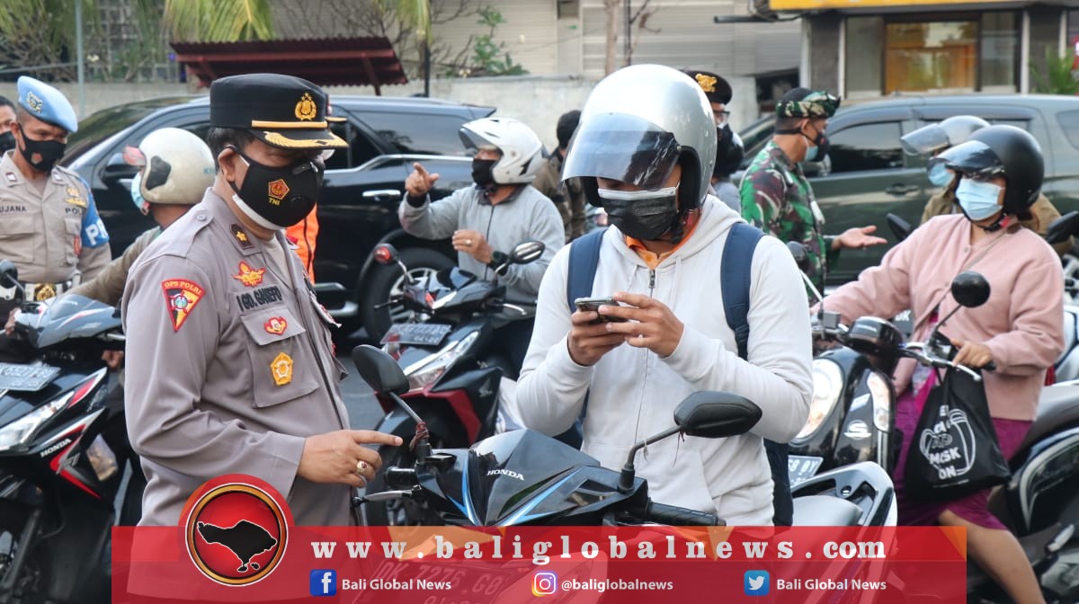Puluhan Kendaraan Diputar Balik Saat Pemeriksaan Pos Penyekatan PPKM Darurat Biaung Denpasar Timur.
