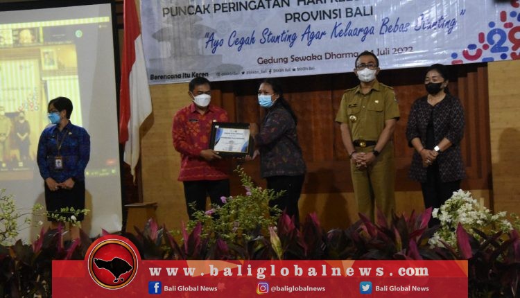 Kadis Kesehatan Provinsi Bali, I Nyoman Gede Anom, yang membacakan sambutan Gubernur Bali, Wayan Koster, menyampaikan peringatan Harganas yang tahun ini mengangkat tema “Ayo Cegah Stunting, Agar Keluarga Bebas Stunting,” mengajak dan berupaya maksimal untuk menurunkan stunting. Hal ini agar pemda harus mampu memrioritaskan sumber dayanya dalam meningkatkan cakupan pelayanan kepada kelompok sasaran, meliputi remaja, calon pengantin, ibu hamil, ibu menyusui dan anak usia 0-59 bulan.