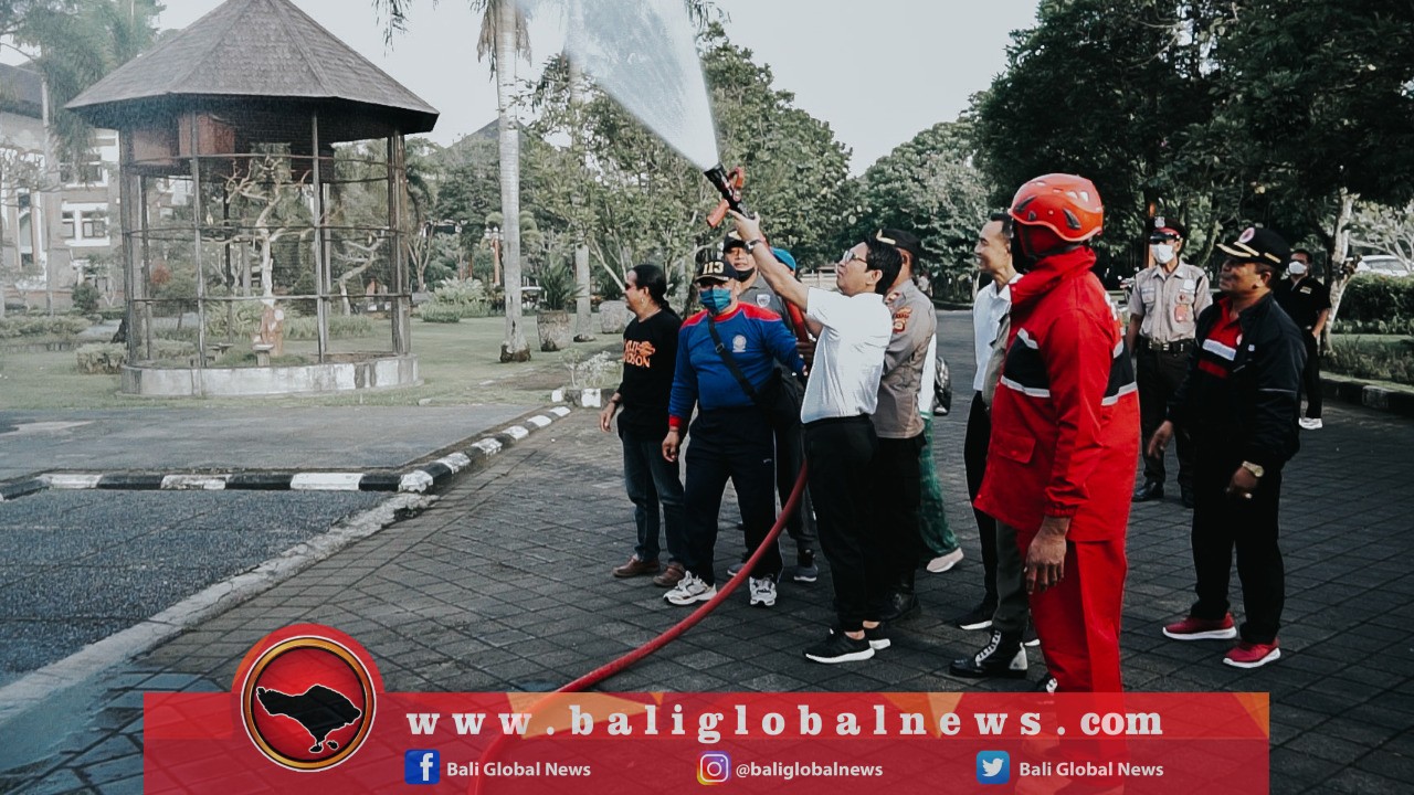 Turut hadir Kadis Pertanian dan Pangan Kabupaten Badung, I Wayan Wijana, Kalaksa BPBD Wayan Darma, Ketua Eco Enzyme Nusantara Bali Rawi Adnyani dan Perwakilan Forkopimda Badung. Penyemprotan dilakukan menggunakan mobil pemadam kebakaran bekerja sama dengan Eco-Enzyme Nusantara. (bgn003)22071815