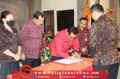 Bupati Tabanan, I Komang Gede Sanjaya, memberikan apresiasi dan penghargaan kepada Pimpinan dan para anggota DPRD Tabanan terkait persetujuan bersama terhadap 3 buah Ranperda Kabupaten Tabanan pada Rapat Paripurna ke-6 Masa Persidangan II, Tahun 2022 DPRD, di Ruang Sidang Utama Kantor DPRD Kabupaten Tabanan, pada Selasa (26/7).