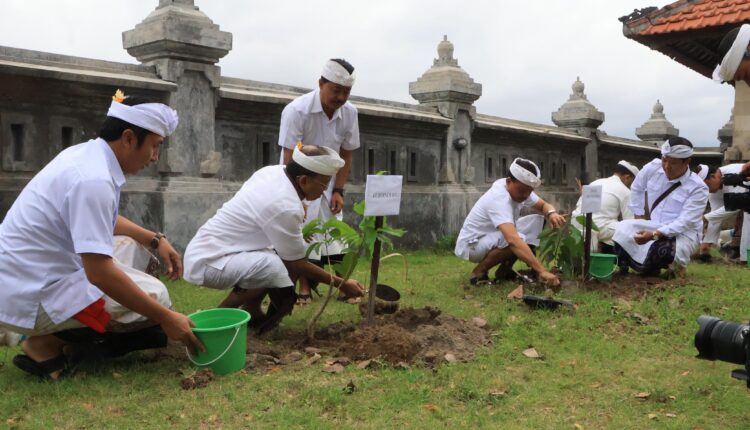 Penanaman pohon dilakukan di dalam area Pura Sakenan, dengan jenis pohon meliputi bibit cempaka, sawo kecik, nagasari, matoa, dan nyamplung. Kelima jenis pohon ini dipilih karena memiliki nilai ekologis tinggi serta makna simbolik dalam budaya Bali sebagai lambang kesucian, perlindungan alam, dan keharmonisan lingkungan.