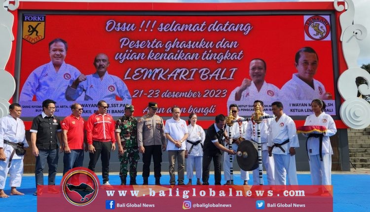 Ribuan karateka Lemkari se-Bali mengikuti ghasuku dan ujian kenaikan tingkat di Alun-alun Kabupaten Bangli pada Jumat (22/12/2023). Acara yang digelar 21 hingga 23 Desember 2023 tersebut dibuka oleh Ketua Lemkari Bali, I Wayan Mudra, ditandai dengan memukul gong.
