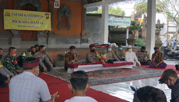 Kapolres Bangli, AKBP I Gusti Agung Dhana Aryawan, S.I.K.,M.I.K., kembali safari kamtibmas dan memberikan sarana kontak untuk menjaga situasi yang aman damai dan sejuk pelaksanaan Pilkada serentak tahun 2020.