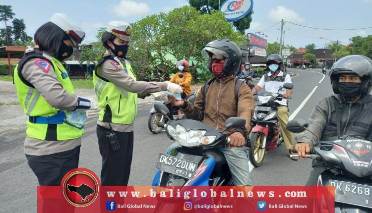 “Kami dari Satlantas Polres Badung memberikan himbauan kepada masyarakat, agar selalu mengenakan masker saat berada di luar rumah. Karena pandemi Covid -19 hingga saat ini belum ada tanda-tanda penurunan,” kata Kasat Lantas Polres Badung AKP Aan Saputra, SIK.