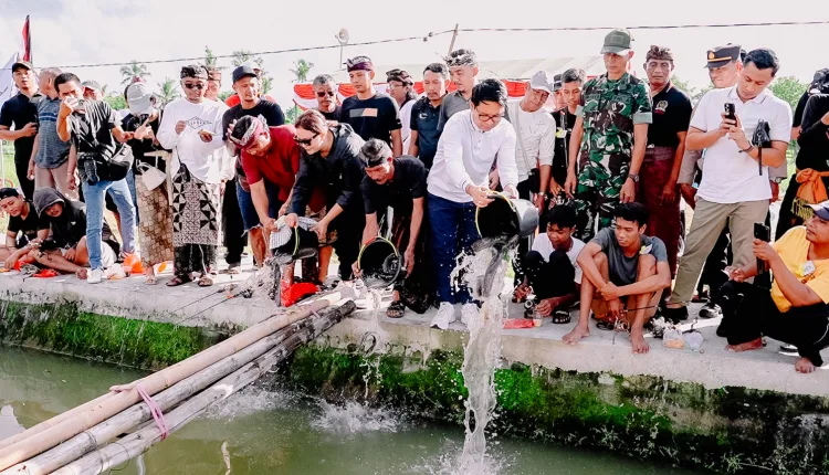 Pada Kesempatan itu Sekda Adi Arnawa didampingi anggota DPRD Kabupaten Badung Ni Putu Yunita Oktarini melakukan penebaran ikan secara simbolis sebagai tanda telah dibukanya lomba mancing.