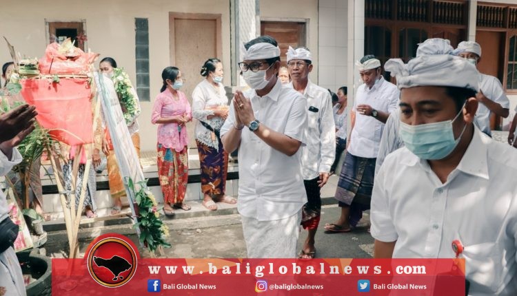 Sekretaris Daerah (Sekda) Kabupaten Badung, I Wayan Adi Arnawa, menghadiri upacara macaru Wrasspati Kalpa serangkaian Karya Mamungkah, Ngenteg Linggih, Caru Warespati Kalpa, Rsi Gana, Melaspas, Mendem Pedagingan, Mapiodalan dan Metigang Sasih, Mepedudusan Alit, di Merajan Para Gotra Sentana Dalem Tarukan, Sabtu (9/7).
