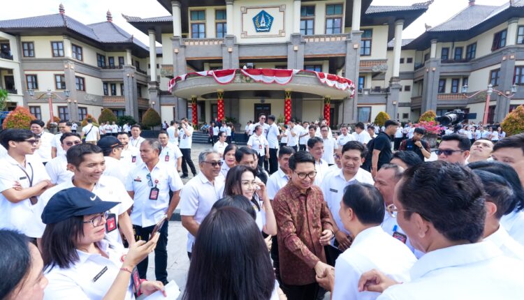 Sekretaris Daerah (Sekda) Kabupaten Badung I Wayan Adi Arnawa berpamitan dengan seluruh kepala OPD dan para pegawai di Lingkungan Pemerintah Kabupaten Badung di Lapangan Pusat Pemerintahan Kabupaten Badung, Mangupraja Mandala, pada Rabu (28/8/2024).