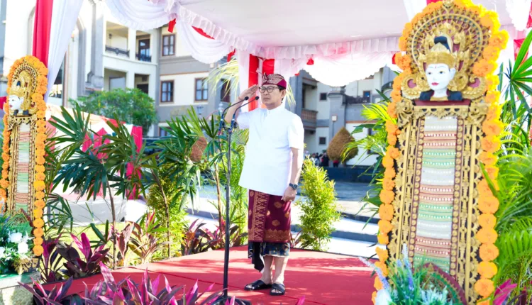 Sekretaris Daerah (Sekda) Kabupaten Badung, I Wayan Adi Arnawa, memimpin apel peringatan Hari Lahir Pancasila di Lapangan Pusat Pemerintahan Kabupaten Badung, Mangupraja Mandala, pada Sabtu (1/6/2024).