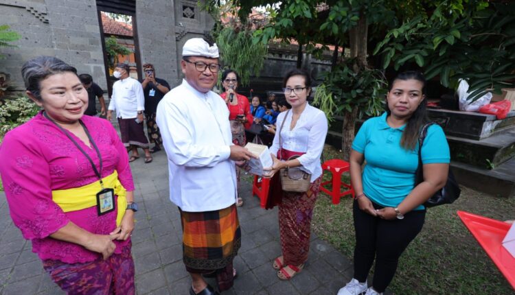 Sekda Alit Wiradana Bersama Prajuru Banjar Gemeh Serahkan Alkes untuk Posyandu di Desa Dauh Puri Kangin.