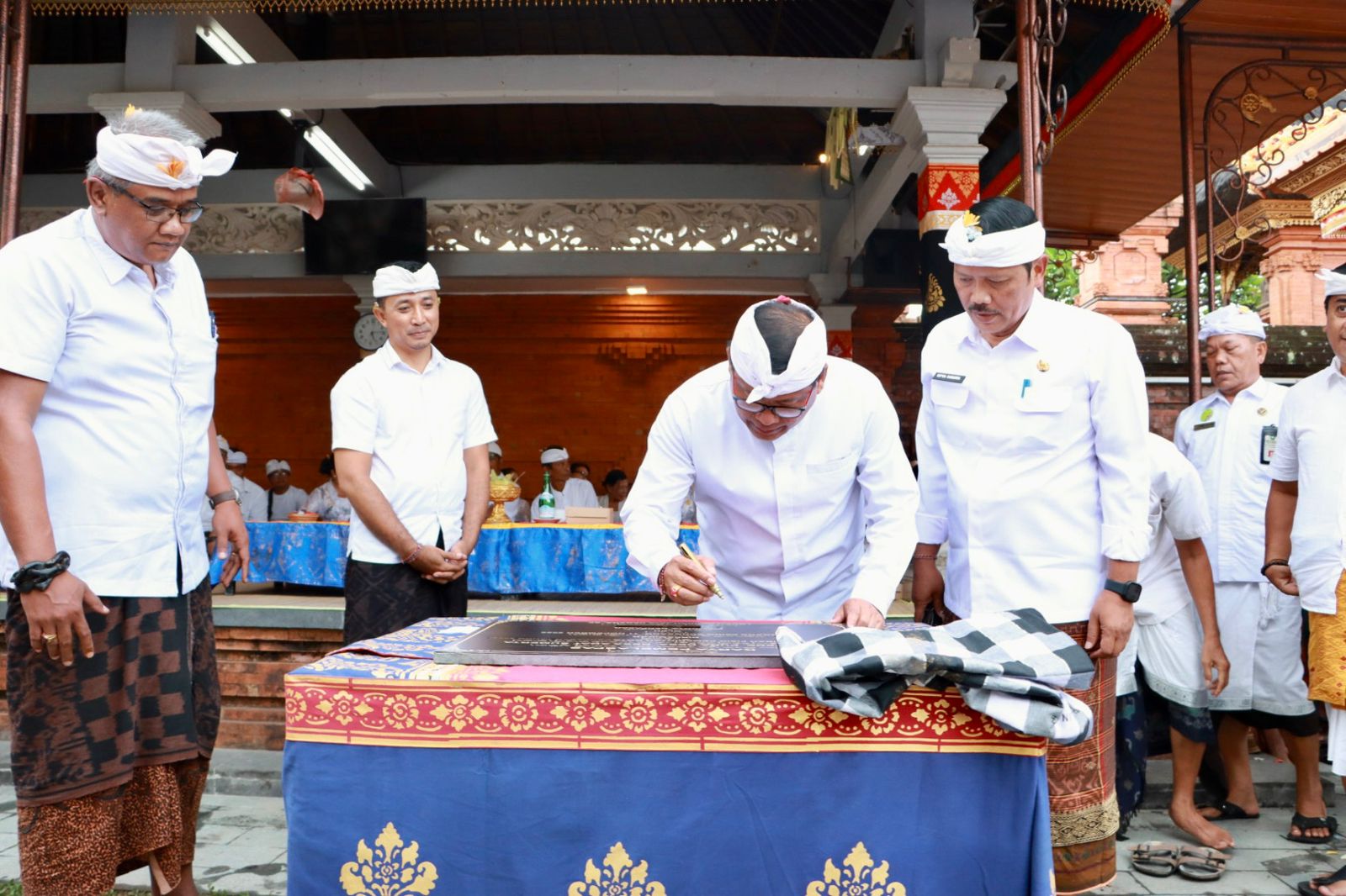 Pada kesempatan tersebut Sekda IB Alit Wiradana menandatangani prasasti sebagai simbolis telah dilaksanakannya upacara melaspas seusai renovasi. Sekda undangan di antaranya Anggota DPRD Kota Denpasar I Made Mudra, Camat Denpasar Timur Ni Ketut Sri Karyawati, Lurah Sumerta, I Wayan Eka Apriana, Jro Bendesa Adat Sumerta Made Ariawan Payusa turut sembahyang bersama. (*/bgn003)25111214