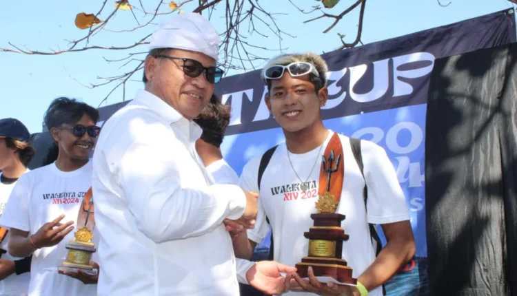 Sekda Alit Wiradana Serahkan Piala Pemenang Kejuaraan Surfing Walikota Cup Tahun 2024