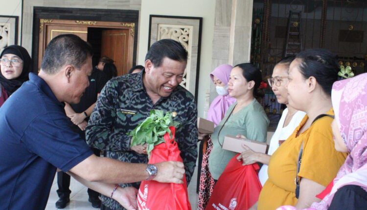 Sekda Alit Wiradana Tinjau Bazar Pangan Banjar Tegal Kawan, Pemecutan Klod, Serahkan 50 Paket Bantuan Stunting kepada Warga