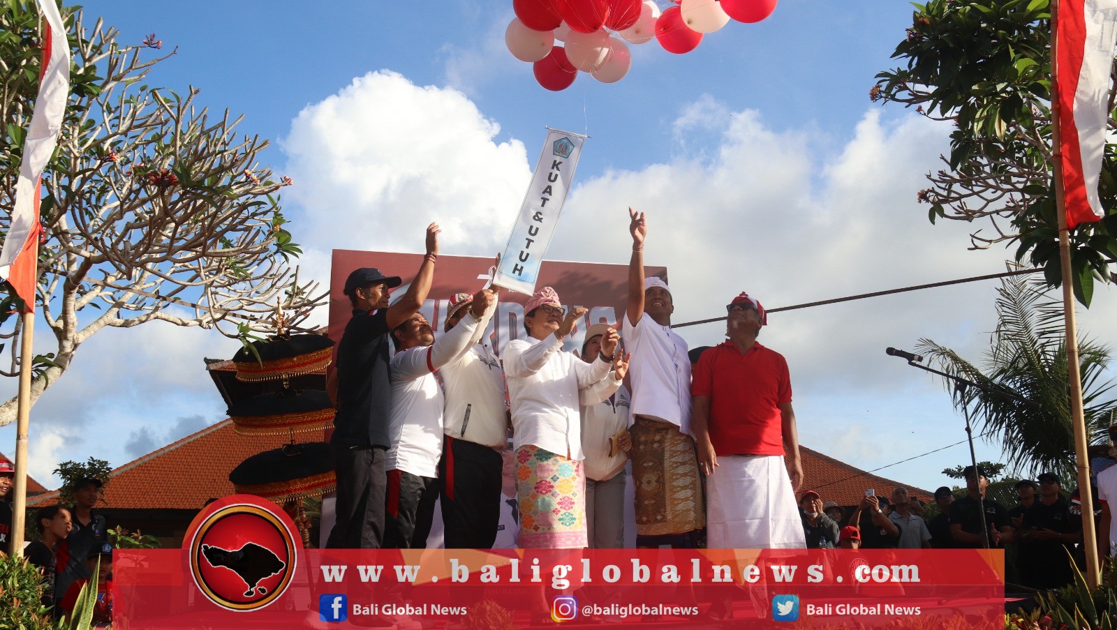 Sekda Badung, Wayan Adi Arnawa, meluncurkan sekaligus membuka Lomba Senam Maskot Kutuh, Desa Adat Kutuh, Kecamatan Kuta Selatan, ditandai dengan melepas balon pada Rabu (16/8/2023).