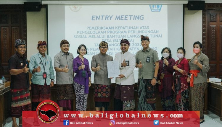 Sekda Badung, I Wayan Adi Arnawa, mewakili Bupati Badung menerima entry meeting Tim Badan Pemeriksa Keuangan (BPK) Republik Indonesia Perwakilan Provinsi Bali untuk melakukan pemeriksaan rinci terhadap kepatuhan atas pengelolaan program perlindungan sosial melalui bantuan langsung tunai (BLT) desa tahun anggaran 2022 Pemerintah Kabupaten Badung dan instansi terkait lainnya di ruang Kriya Gosana, Puspem Badung, Kamis (27/10/2022).