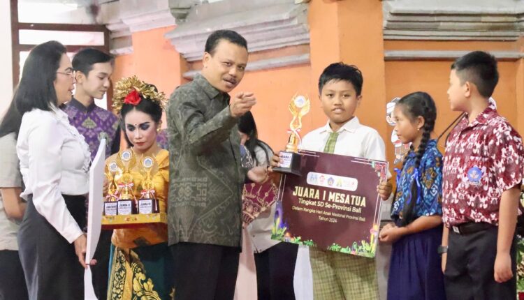 Dewa Made Indra yang membacakan sambutan Penjabat Gubernur Bali SM Mahendra Jaya menekankan pentingnya peran anak dalam pembangunan bangsa.