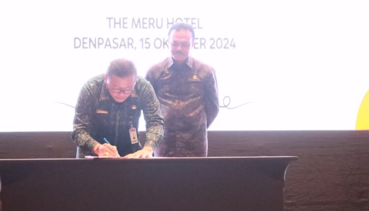 Pemerintah Provinsi Bali dan pemerintah kabupaten/kota se-Bali menandatangani perjanjian kerja sama (PKS) terkait sinergitas penerimaan Pajak Kendaraan Bermotor (PKB), Bea Balik Nama Kendaraan Bermotor (BBNKB), dan Pajak Mineral Bukan Logam dan Batuan (MBLB) di The Meru Hotel, Sanur, Kecamatan Denpasar Selatan, pada Selasa (15/10/2024).