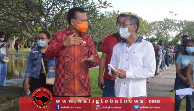 Sekretaris Daerah Provinsi Bali, Dewa Made Indra, kembali meninjau pelaksanaan vaksinasi bagi pekerja migran indonesia (PMI) asal Bali di Taman Jepun, Denpasar Timur, Rabu (31/3). Vaksinasi tersebut penting bagi seluruh masyarakat Bali. Terlebih mereka yang akan melanjutkan perjuangan di luar negeri.