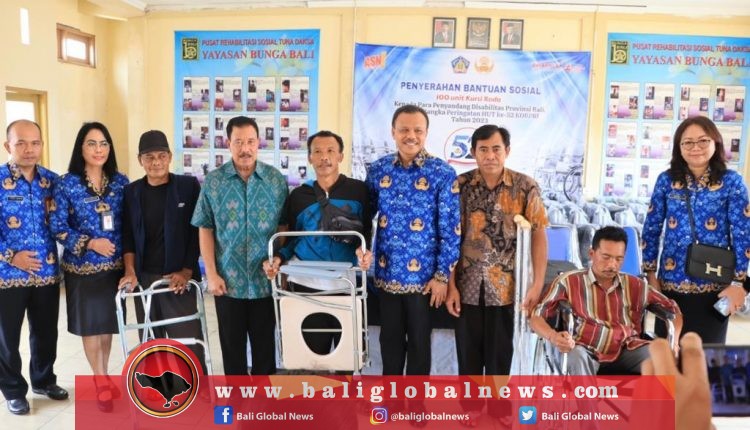 Sekda Dewa Indra Serahkan Bantuan Kursi Roda dari Dewan Korpri Bali di Yayasan Bunga Bali
