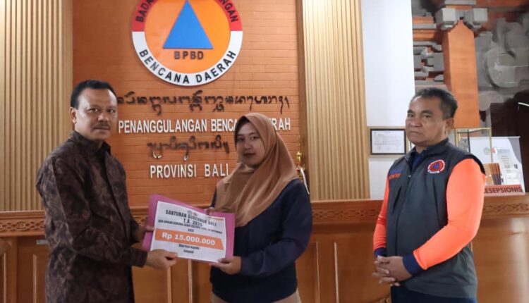 Bantuan berupa santunan sebesar Rp15 juta diserahkan kepada Doa Miftah Ul Suwandi, ahli waris dari almarhum Suwandi. Doa, yang ditemani kakaknya, Bayu Candra Permana, menuturkan bahwa ayahnya terseret arus pada 10 September lalu di Perumahan Griya Selaras pada dini hari. Korban ditemukan pada hari keenam, yakni 16 September. Doa dan Bayu menyampaikan terima kasih kepada Pemerintah Provinsi Bali atas bantuan yang diberikan.
