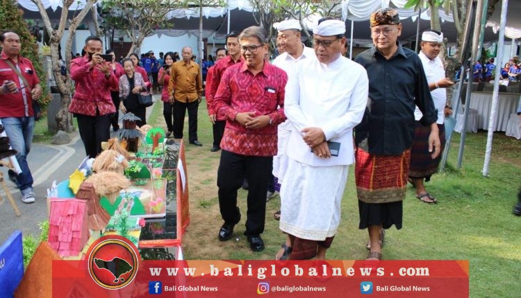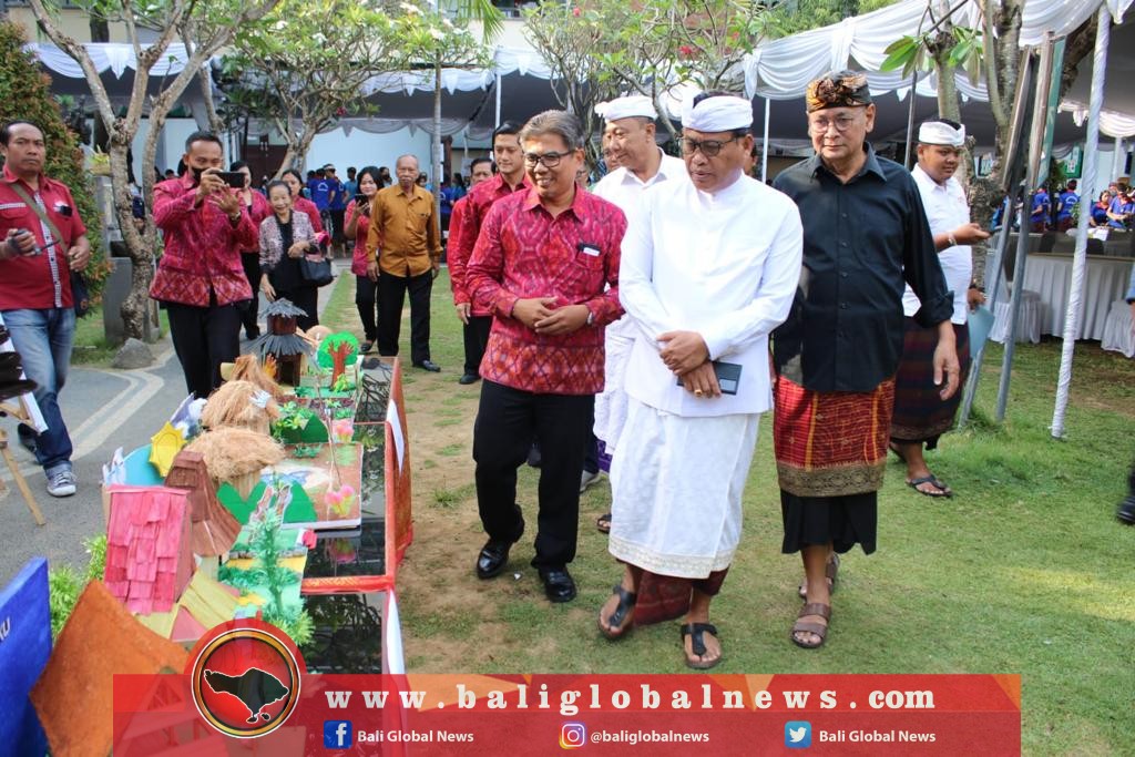 Sebelum peresmian, Sekda IB Alit Wiradana meninjau pameran hasil karya siswa serta kegiatan bazar yang dilaksanakan di halaman Yayasan Dwijendra Denpasar.