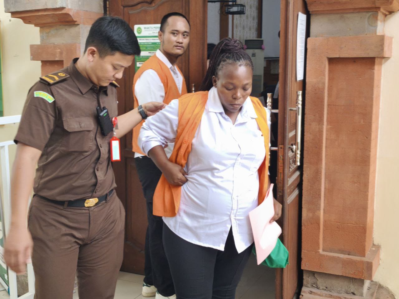Terdakwa Lungile Ntombenhile Mzimela (32) seorang ibu hamil (bumil) asal Afrika Selatan yang nekat menyelundupkan 990,83 gram netto narkoba jenis sabu pada pakaian dalamnya saat tiba di Bali, menjalani sidang dakwaan di Pengadilan Negeri (PN) Denpasar pada Selasa (21/10/2025).