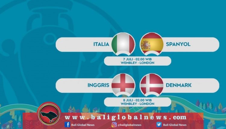 Italia akan meladeni Spanyol dan Inggris ditantang Denmark dalam dua pertandingan semifinal yang seluruhnya bakal dimainkan di Stadion Wembley, London, pada Rabu (7/7) dan Kamis (8/7) WIB.