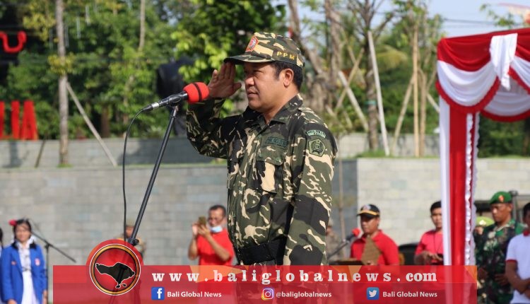 Bupati Bangli, Sang Nyoman Sedana Arta, bertindak selaku Inspektur Ucapara dalam rangka serah terima Pataka Panji-panji dan Surat Sakti I Gusti Ngurah Rai dari Kabupaten Klungkung ke Kabupaten Bangli di Alun-alun Kota Bangli, pada Selasa (15/11/2022).