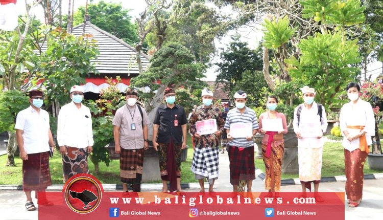Wakil Bupati Bangli, I Wayan Diar, menyerahkan langsung bantuan pemerintah bagi usaha mikro (BPUM) kepada 4 orang penerima perwakilan dari 4 kecamatan di pendopo rumah jabatan Bupati Bangli, Jumat (9/7).