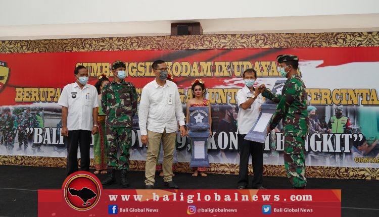 “Sumbangsih Kodam IX/Udayana Berupa Tempat Cuci Tangan Untuk Bali Tercinta,” kata Kepala Staf Korem (Kasrem) 163/Wira Satya Kolonel Inf. Ida Bagus Ketut Surya Wedana yang mewakili Danrem 163/Wira Satya Brigjen TNI Husein Sagaf.