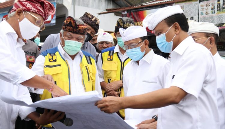 Usai meninjau pengerjaan proyek infrastruktur pada tiga lokasi berbeda, yakni rencana pengembangan Kawasan Besakih (Karangasem), pengembangan Stadion Kapten Dipta (Gianyar) dan pengerjaan Bendungan Belok Sidan (Petang, Badung), Gubernur Bali, Wayan Koster bersama Menteri Pekerjaan Umum dan Perumahan Rakyat RI (PU PR) Basuki Hadimuljono kembali meninjau rencana pembangunan infrastruktur Jalan Tol Mengwi – Gilimanuk di Desa Mengwi, Badung, Kamis (6/8). Dengan pembangunan jalan tol itu, maka akan menambah satu lagi jalan tol yang telah dimiliki Bali sebelumnya, yakni Jalan Tol Bali Mandara.
