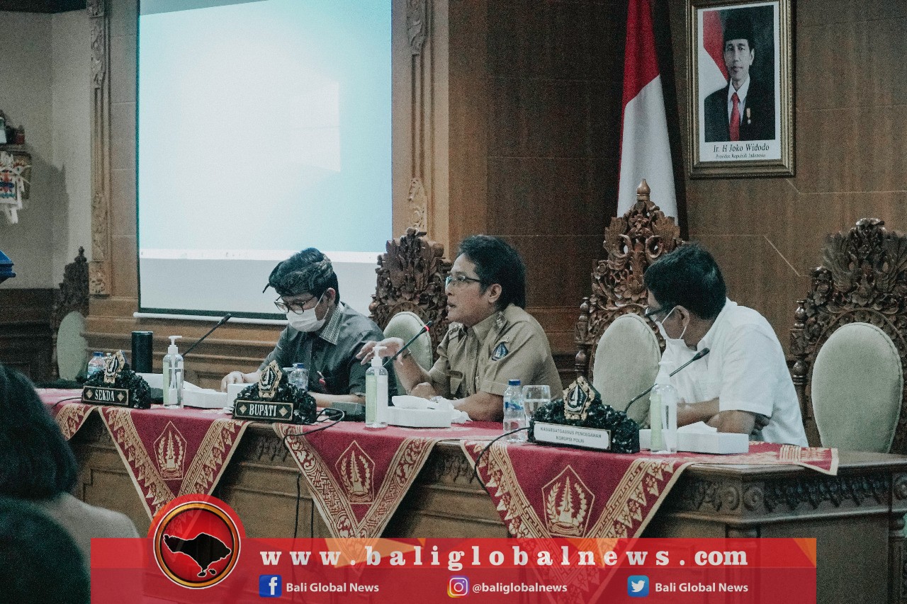 Bupati Badung, I Nyoman Giri Prasta, menerima Kasubsatgassus (Kepala Subsatuan Tugas Khusus) Hotman Tambunan dan jajaran dalam acara penyampaian data dan informasi terkait dengan pencegahan korupsi pada tata kelola pupuk bersubsidi di Ruang Kriya Gosana, Puspem Badung, pada Senin (5/9/2022).