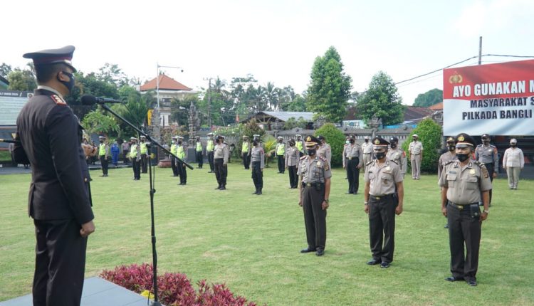 Kapolres Bangli, AKBP I Gusti Agung Dhana Aryawan, memimpin upacara Korps Raport Kenaikan pangkat pengabdian tiga anggotanya di Mapolres Bangli, Kamis (1/10).