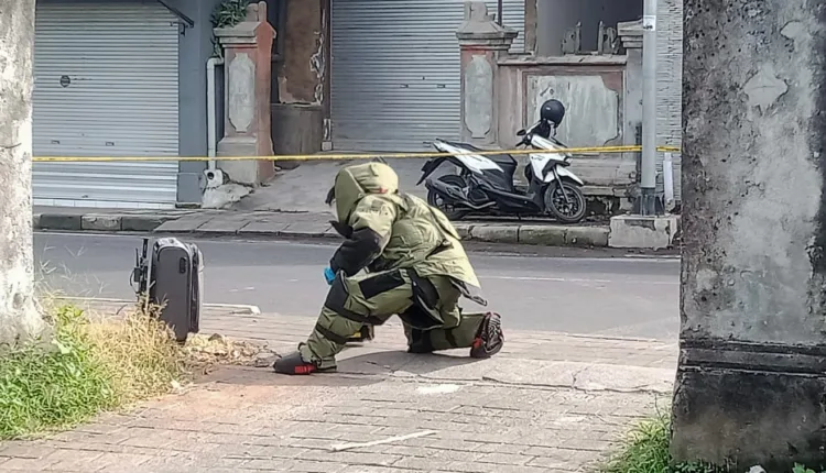 Tim Penjinak Bom Amankan Koper di Atas Trotoar Depan Puri Penarungan