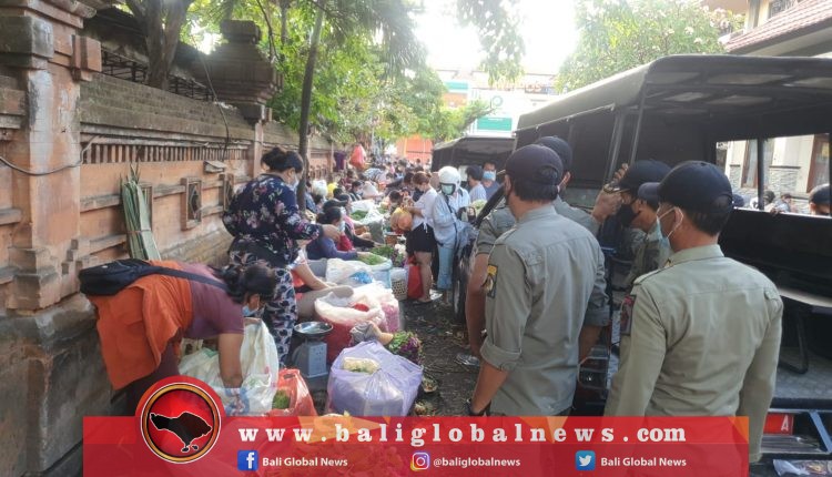 Tim Yustisi Denpasar Tertibkan Prokes PPKM di Pasar Tumpah
