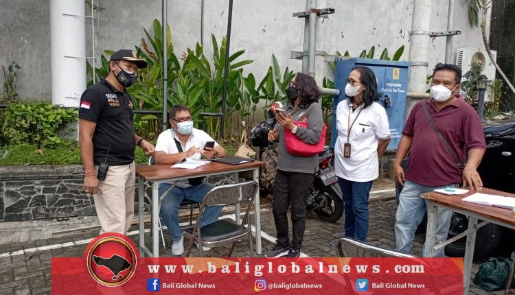 Tim Yustisi Denpasar memantau prokes di Jalan Imam Bonjol, Desa Pemecutan Klod, Jumat (8/10).