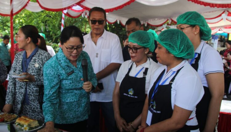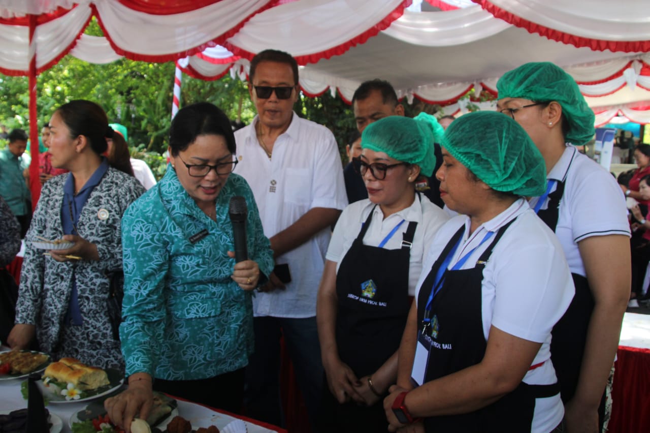 Ny. Giri Prasta turut berbaur bersama kader PKK Kota Denpasar yang tengah melakukan demo memasak. Beragam hasil olahan tangan para kader mendapat apresiasi karena cita rasanya yang gurih dan beragam. “Hasil masakan ini sangat gurih dan layak dikonsumsi. Olahan ikan juga penting bagi perkembangan otak anak-anak di masa pertumbuhan. Karena itu, para kader perlu membentuk koperasi desa untuk menampung dan memasarkan produk olahan mereka, sehingga hasil penjualannya dapat menggerakkan perekonomian keluarga,” ujarnya.