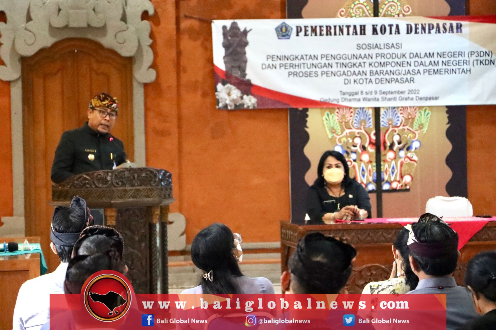 Guna mendorong penggunaan produk dalam negeri pengadaan barang di Instansi Pemerintah, Pemkot Denpasar melalui Disperindag Kota Denpasar mensosialisasikan Peningkatan Penggunaan Produk Dalam Negeri (P3DN) dan Perhitungan Tingkat Komponen Dalam Negeri (TKDN) Proses Pengadaan Barang dan Jasa Pemerintah, di Gedung Dharma Wanita Shanti Graha pada Kamis (8/9/2022).