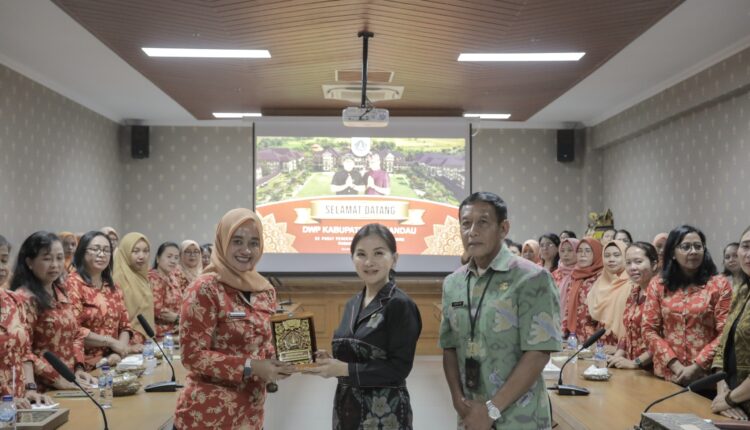 Pj. Ketua Dharma Wanita Persatuan (DWP) Kabupaten Badung Nyonya Surya Suamba menerima kunjungan rombongan dari Ketua DWP Kabupaten Lamandau, Kalimantan Tengah (Kalteng), Nyonya Endah Rahayuningsih bersama Ketua Unit DWP Organisasi Perangkat Daerah se-Kabupaten Lamandau di ruang pertemuan Balai Budaya Giri Nata Mandala, Puspem Badung, pada Selasa (8/10/2024).