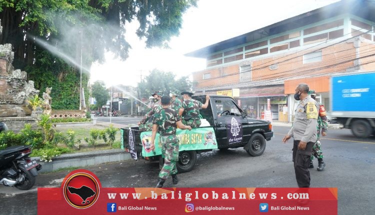 Sinergitas antara TNI-Polri dalam hal ini Korem 163/Wira Satya, Polres Gianyar, Komunitas Eco Enzim Nusantara, Palang Merah Indonesia (PMI) Gianyar melaksanakan penyemprotan eco enzyme di wilayah Desa Peliatan, Ubud, Gianyar.