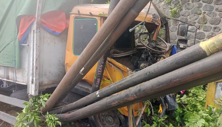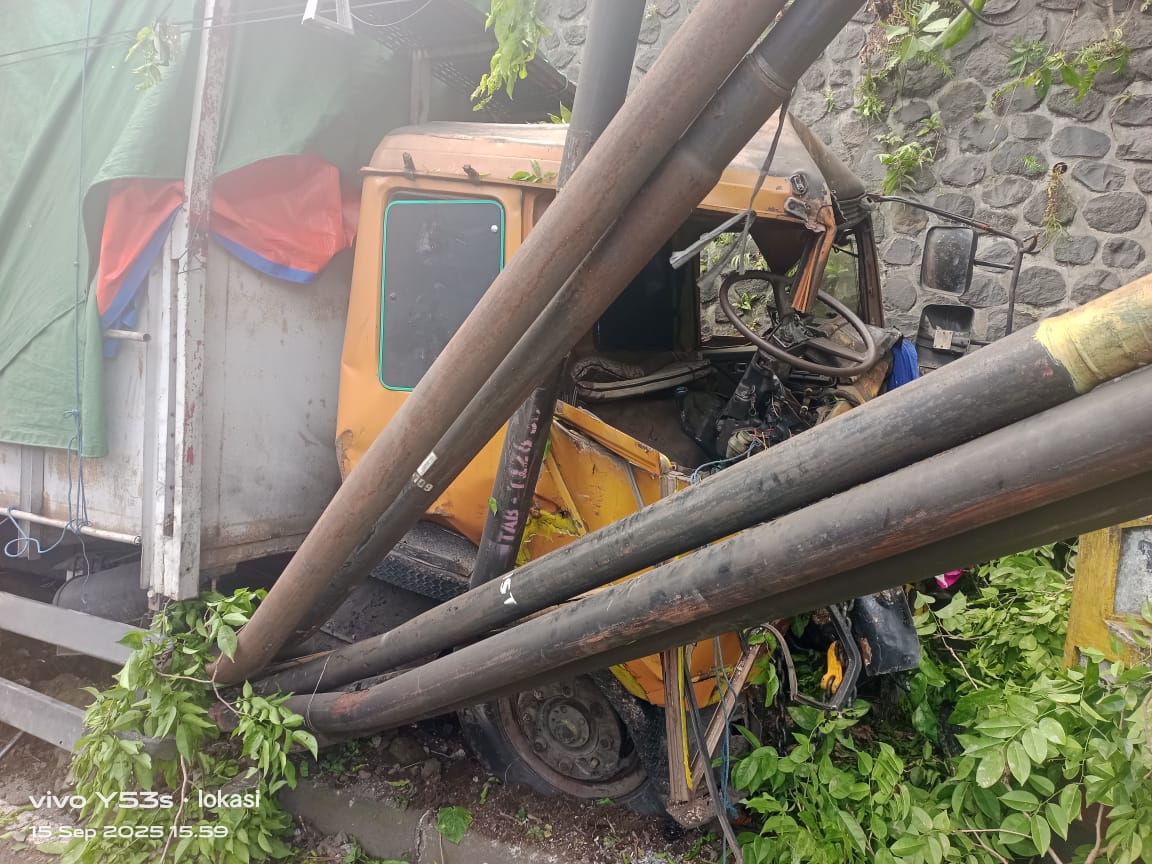 Truk Bermuatan Paket Hantam Tiang Telepon di Kediri