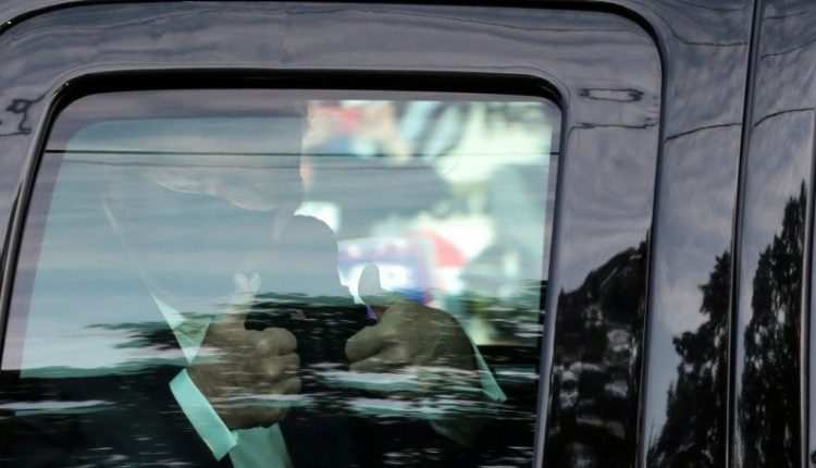 Menggunakan apa yang tampak seperti masker bedah warna putih, Trump mengepalkan tangannya dan memberikan acungan jempol saat menuruni anak tangga Pusat Medis Walter Reed di luar Washington. Menanggapi pertanyaan awak media soal jumlah orang yang terinfeksi di Gedung Putih, Trump menjawab : “Terima kasih banyak.”