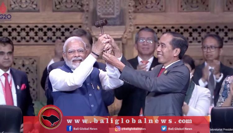 “Menandai berakhirnya Presidensi Indonesia di G20, secara resmi saya menyerahterimakan tampuk kepemimpinan kepada India selaku Presidensi G20 berikutnya. Dan saya menyampaikan penghargaan yang setinggi-tingginya kepada semua yang hadir, yang telah memberikan fleksibilitasnya, sehingga deklarasi dapat disepakati dan disahkan,” katanya.