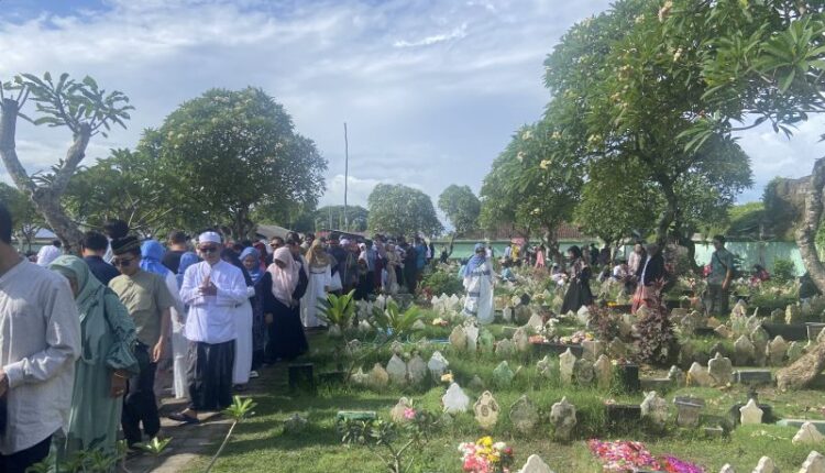 Umat Hindu di Bali yang memiliki keluarga Muslim mengikuti tradisi ziarah di Pemakaman Muslim Wanasari Denpasar saat Hari Raya Idul Fitri 1446 Hijriah.