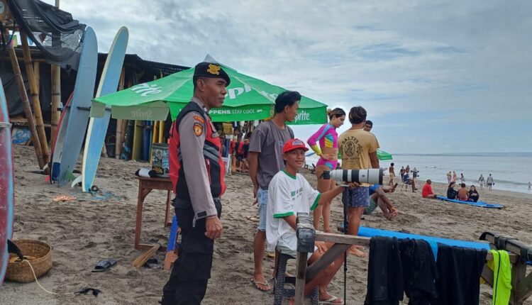 Unit Samapta Polsek Kuta Utara Ingatkan Pengunjung Waspada Saat Beraktivitas di Pantai