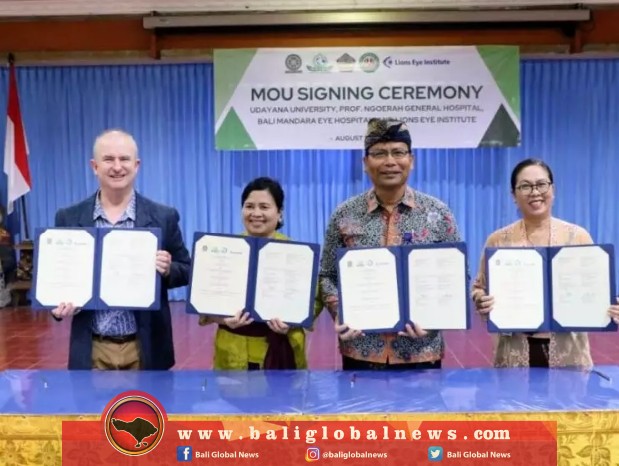 Universitas Udayana (Unud) melalui RSUP Prof. Ngoerah bersama dengan RS Mata Bali Mandara, menandatangani kerjasama (MoU), dengan Lions Eye Institute, Australia, di Aula Werkudara Gedung Poliklinik RSUP Prof. Ngoerah, pada Kamis (10/8/2023).