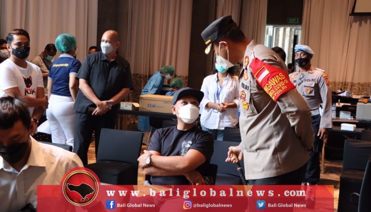 Kapolres Badung, AKBP Leo Dedy Defretes, meninjau pelaksanaan vaksinasi serentak Indonesia di Hotel W, Jalan Petitenget, Kerobokan Kelod, Kecamatan Kuta Utara, Badung, pada Rabu (23/2) pukul 12.00 wita, sekaligus zoom meeting vaksinasi serentak Indonesia yang dipimpin Kapolri Jenderal Pol. Listyo Sigit Prabowo.