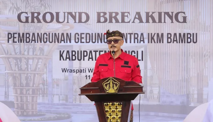 Wakil Bupati (Wabup) Bangli, I Wayan Diar, hadiri peletakan batu pertama pembangunan Sentra Industri Kecil dan Menengah (UKM) Bambu di Sentra IKM Bambu Bangli, Desa Tiga, Kecamatan Susut, Bangli, pada Kamis (11/7/2024).