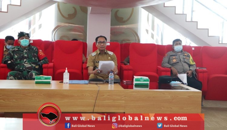 Wakil Bupati Badung, I Ketut Suiasa, rapat koordinasi secara virtual dengan Dirjen Bina Pemerintahan Desa Kementerian Dalam Negeri (Kemendagri) dari Gedung Badung Command Centre, Senin (1/2). Rakor terkait pelaksanaan tahapan Pilkades Kabupaten Badung yang aman sesuai prokes Covid-19 diikuti oleh pihak desa yang melaksanakan Pilkades secara daring.