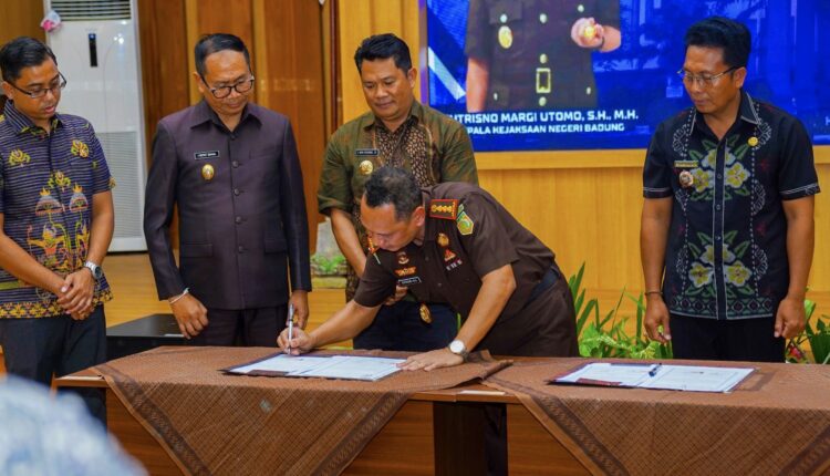 Wakil Bupati Badung I Ketut Suiasa didampingi Sekda Surya Suamba menghadiri Penerangan Hukum Jaksa Garda Desa (Jaga Desa) oleh Kepala Kejaksaan Negeri (Kajari) Badung yang diikuti oleh perbekel se-Badung, dilanjutkan penandatanganan nota kesepahaman bersama antara desa se-Kabupaten Badung dengan Kejaksaan Negeri Badung. Kegiatan yang diinisiasi oleh Dinas Pemberdayaan Pemerintahan Desa Kabupaten Badung dilaksanakan di Aula Kejari Badung pada Jumat (14/2/2025).